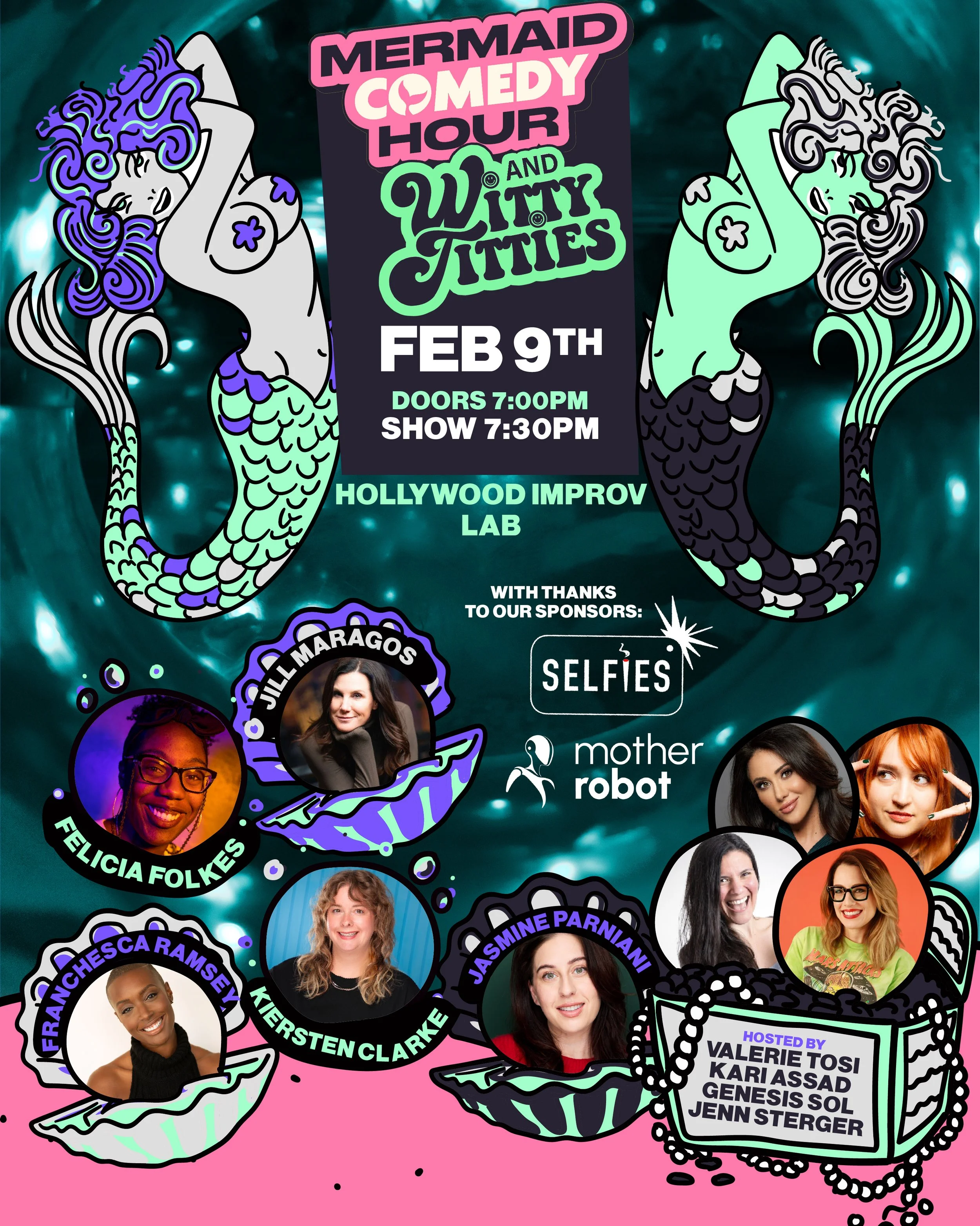 Witty Titties is splashing into Galentine’s Day with @mermaidcomedyhour for a one-night-only collab! Join us Monday, 2/9 at 7 PM in the Hollywood Improv Lab for a stacked lineup of comics telling jokes about love, lust, heartbreak, and anything related to Valentine’s/Galentine’s Day.